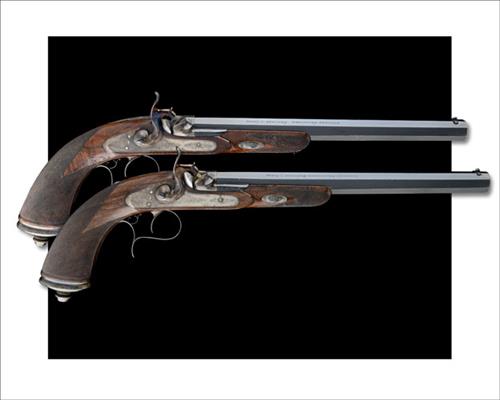 A GOOD PAIR OF 60-BORE PERCUSSION TARGET-PISTOLS, serial no's 14161,