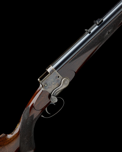 A RARE .360 (2 1/4IN.) BLACK POWDER EXPRESS 1880 PATENT SIDELEVER TAKE-DOWN FALLING-BLOCK MATCH RIFLE, serial no. 1186,