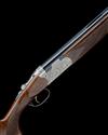 28in. nitro barrels with 6mm ventilated matt top-rib, 3in. chambers, bored approx. imp. cyl. and 1/4 choke, hold-open toplever, automatic safety with integral barrel selector switch, gold-washed single trigger, acanthus scroll engraving surrounding carved vignettes of game, bright finish, 13 3/4in. pistolgrip stock including 3/8in. rubber recoil pad, weight 6lb., in its makers universal case