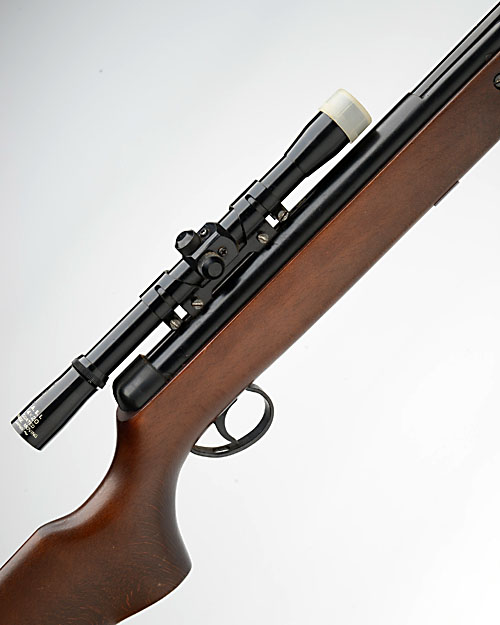 A .22 BREAK-BARREL AIR-RIFLE SIGNED BSA, MODEL 'METEOR SUPER' , serial no. TH88105, with black enamelled 18 1/2in. barrel and receiver, beech stock with rubber recoil pad and fitted with an ASI 4X20 telescopic sight