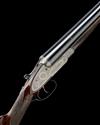 27in. sleeved nitro barrels, rib gold-inlaid '1' at the breech end, 2 1/2in. chambers, bored approx. imp. cyl. and 1/4 choke, treble-grip action with hidden third bite, toplever gold-inlaid '1', automatic safety with gold-inlaid 'SAFE' detail, gold-inlaid cocking-indicators, bouquet and scroll engraving, brushed bright finish, 14 1/4in. figured replacement stock, weight 6lb. 9oz., in a leather case