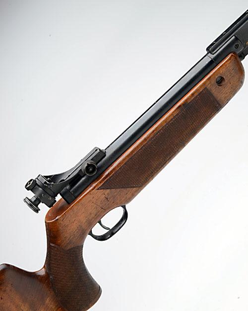 ** A SCARCE .177 BREAK-BARREL AIR-RIFLE SIGNED WALTHER, MODEL '55 TYROLEAN', serial no. 111884, circa 1960, with blued 17 3/4in. barrel with scarce full-length removable barrel-weight, tunnel fore-sight, plain blued air-chamber with short rear-mounted rail and aperture sight, scarce chequered walnut tyrolean half-stock and much finish throughout