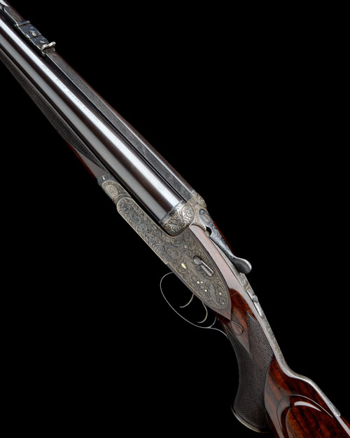 Provenance: The makers have kindly confirmed that the rifle was completed as a '.450/400 Model de Luxe hammerless ejector rifle' with '26in. barrels, treble grip, hand detachable locks, top lever and auto safety, pistol hand and cap box, cheekpiece, long top strap, standard + 2 leaves, chequered butt, loops for sling'. The date of completion was 29th November 1922 and the rifle was made for 'Barwani'.