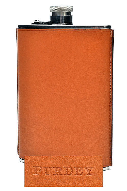 JAMES PURDEY & SONS A NEW AND UNUSED LEATHER-BOUND 8oz. DRINKING FLASK,