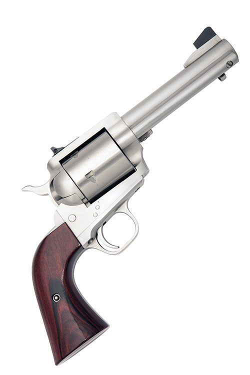 recent, with round 4 3/4in. stainless barrel, ramp and blade fore-sight, adjustable rear-sight sunk into the top-strap, plain stainless five-shot cylinder, solid stainless frame and grip-straps, smooth laminated wood grips and under-barrel ejection rod