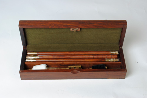 A NEW AND UNUSED OAK CASED PRESENTATION 12-BORE GUN CLEANING KIT,