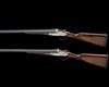 27 5/8in. nitro chopperlump barrels (No.1) and 27 7/8in. nitro chopperlump barrels (No.2), ribs with acanthus scroll detailing at the breech ends and gold-inlaid '1' and '2', 2 3/4in. chambers, bored approx. imp. cyl. choke in all, removable striker discs, automatic safeties, incorporating Holland & Holland style self-opening systems, articulated front triggers, rolled-edge triggerguards, floral and acanthus scroll engraving, bright and blued finish, the triggerguards gold-inlaid with 'AC' and a fleur de lys, 14 1/8in. figured stocks including 7/8in. leather covered recoil pads, weight 6lb. (No.1) and 6lb. 4oz. (No.2)