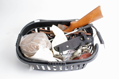 A COLLECTION OF SHOOTING RELATED ITEMS, including spare shotgun stock, straps, holsters, hip flask, pheasant ornaments