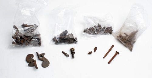A COLLECTION OF FLINTLOCK RELATED ITEMS, including flintlock cocks, frizzens, crosspins, screws, nipples
