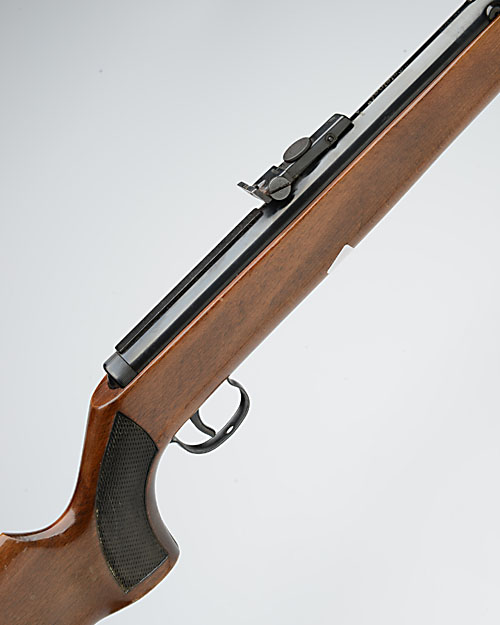 A .22 UNDER-LEVER COCKING AIR-RIFLE SIGNED ORIGINAL, MODEL '50', no visible serial number, dated for 1974, with 18 3/4in. barrel, open sights, telescopic sight rail and beech three-quarter stock with under-lever concealed in the fore-end