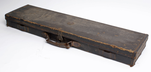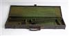 A CANVAS AND LEATHER SINGLE GUNCASE, fitted for 30in. barrels, the interior lined with green baize