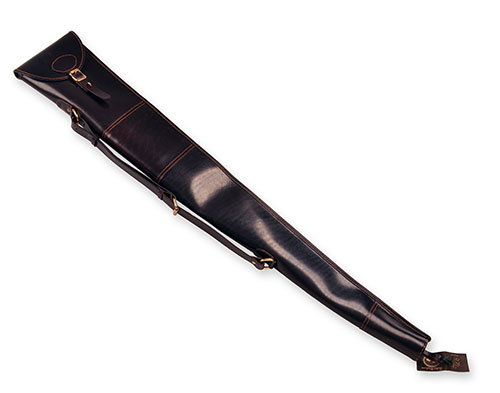 A NEW AND UNUSED CHOCOLATE LEATHER FLEECE-LINED SINGLE GUNSLIP,