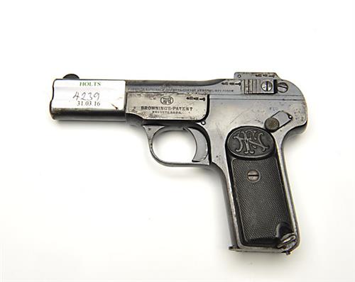 A 7.65mm (.32 ACP) SEMI-AUTOMATIC PISTOL SIGNED FN, MODEL 'BROWNING 1900', serial no. 602747, pre World War One, with 4in. barrel, blued slide and frame and chequered hard-rubber grips embossed with the 'FN' monogram.