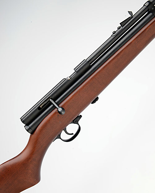 A .22 CO2 POWERED AIR-RIFLE SIGNED SMK, MODEL 'XS78', no visible serial number, recent, with 21in. blued barrel, bolt-action receiver, blued reservoir and beech half-stock, appearing little used