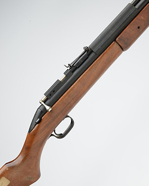 A .20 MULTI-PUMP PNEUMATIC SIGNED SHERIDAN, MODEL 'BLUE-STREAK, serial no. 8691F, for 1991, with 19in. sighted barrel, bolt-action receiver, brass air-chamber finished in matt-black, walnut butt-stock and pump-handle