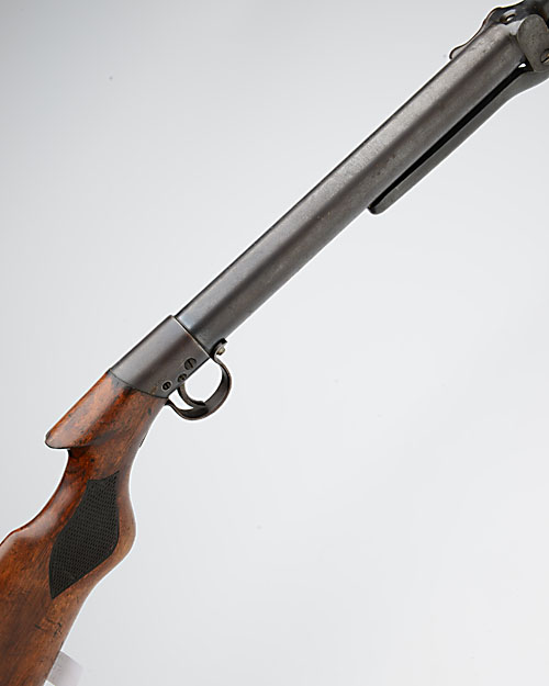 A .22 UNDER-LEVER COCKING AIR-RIFLE SIGNED BSA, MODEL 'STANDARD', serial no. S35954, for 1928, with sighted 19 1/4in. barrel, blued air chamber (etching feint but legible), saw-gripped walnut butt-stock and push-button under-lever, some speckled surface corrosion