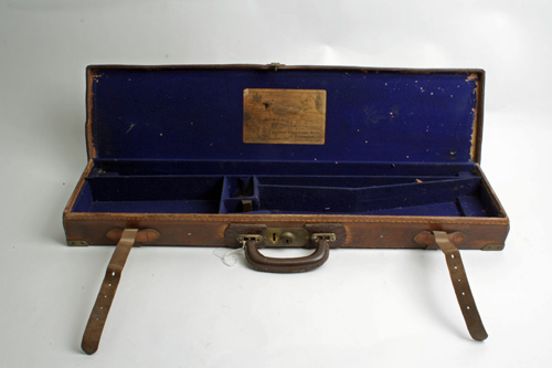 A C.G. BONEHILL BRASS-CORNERED LEATHER SINGLE GUNCASE,