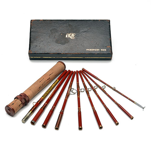 AN UNUSUAL VINTAGE CASED PASSPORT TEN PIECE FISHING ROD,