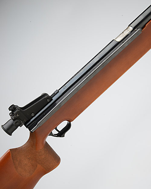 A .177 SIDE-LEVER COCKING AIR-RIFLE SIGNED HAENAL, MODEL '312 TARGET', serial no. 120365, circa 1993, with sighted 16 1/2in. barrel, sliding loading port, rear of air-chamber mounted with a diopter sight, right-hand beech target style half-stock