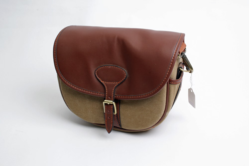 A LIGHT-WEIGHT CANVAS AND LEATHER CARTRIDGE BAG,