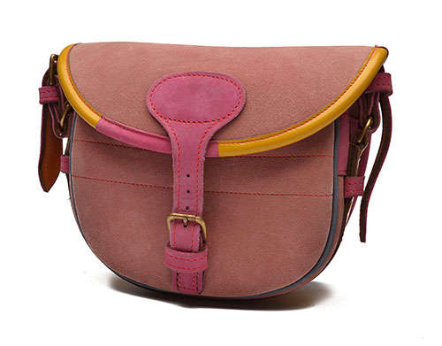AN UNUSED PINK SUEDE LEATHER CARTRIDGE BAG,