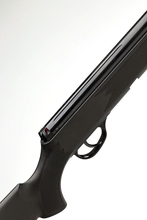 A ,22 BREAK-BARREL AIR-RIFLE SIGNED 'WEBLEY', MODEL 'VMX BLACK', serial no. 061323363, with 17in. sighted barrel, railed air-chamber with rear-mounted safe and black abs plastic half-stock, appearing little used