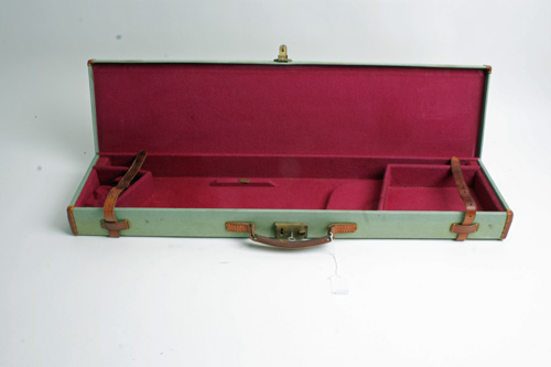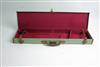 A CANVAS AND LEATHER SINGLE GUNCASE, fitted for 29in. barrels, the interior lined with red baize, brass lock (including key)