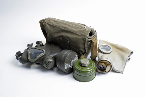 TWO GAS MASKS, A NATO-ISSUE GAS-MASK, MODEL 'S6', complete with its filter, in a nylon zip bag.