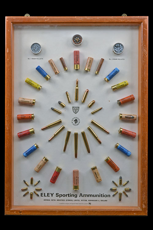 showing a collection of sporting and military ammunition, with central trade mark, measuring approx. 20in. x 27 1/2in.