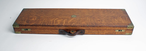 A BRASS-CORNERED OAK SINGLE GUNCASE,
