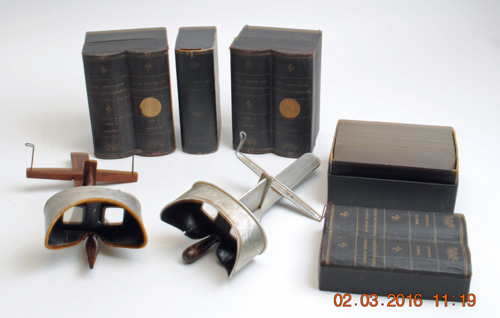 SOUTH AFRICAN BOER WAR STEREOSCOPE SLIDES WITH VIEWERS, dated 1901 a selection of South African War Through The Stereoscope slides, including Part I Vol I & II and Part II Vol I & II and Part III Vol I & II, encased within book shaped slip cases, appearing complete and published by Underwood & Underwood, dated 1901 to the bottom, boxes have some wear, otherwise generally average to good condition complete with two viewers