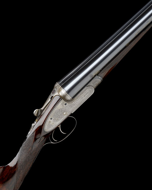 29in. replacement nitro barrels, rib engraved 'BOSS & CO. 13 - 14 CORK STREET. LONDON. W.1.' (rear lump numbered 15478), 2 1/2in. chambers, bored approx. imp. cyl. and 1/4 choke, some losses to bluing, action with patent gas checks, Boss type ejectors, automatic safety with gold-inlaid 'SAFE' detail, border and acanthus scroll engraving, retaining very slight traces of original colour-hardening, 14 3/8in. stock including 5/8in. wooden extension, fore-end with Deeley & Edge patent release catch, weight 6lb. 7oz.