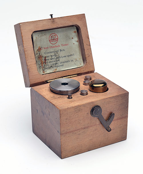 A CASED 12-BORE GUN-LOCK TESTER BY ICI,