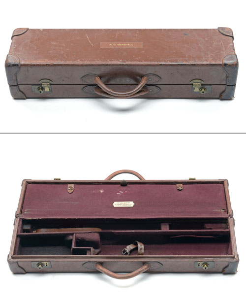 A LEATHER 'V.C.' LEATHER DOUBLE GUNCASE,