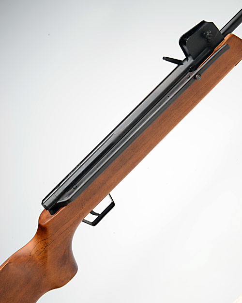 A SCARCE .22 SIDE-LEVER AIR-RIFLE SIGNED JACKAL, MODEL WOODSMAN, serial no. 00645,