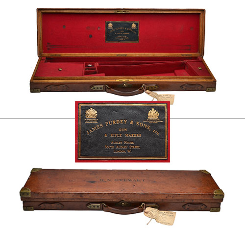 fitted for 30in. barrels, replacement label, with some accessories, the lid outer marked 'W.N. STEWART'