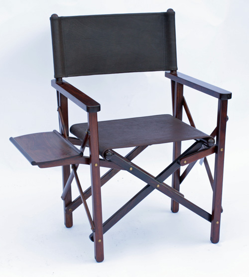 A FINE ROSEWOOD AND LEATHER CAMPAIGN TYPE FOLDING CHAIR,