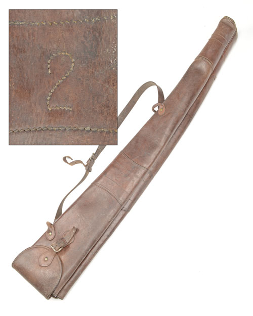 A VINTAGE LEATHER FLEECE-LINED DOUBLE GUNSLIP,