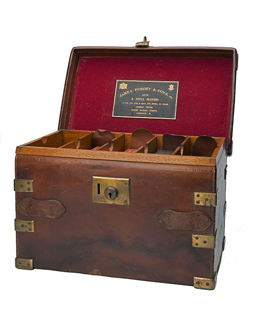 JAMES PURDEY & SONS A BRASS-BOUND OAK AND LEATHER THE AUDLEY CARTRIDGE MAGAZINE,