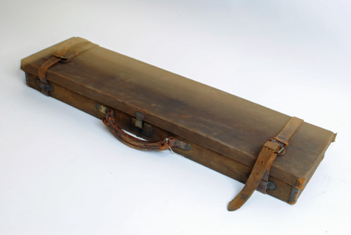 A CANVAS AND LEATHER SINGLE GUNCASE,
