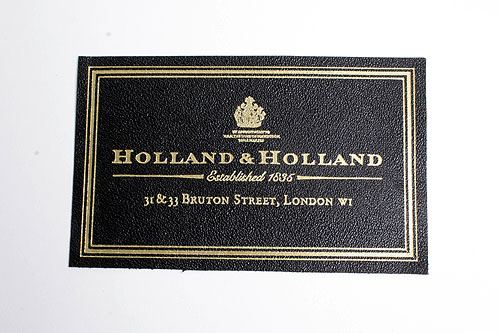 A LEATHER GOLD-TOOLED HOLLAND & HOLLAND TRADE LABEL