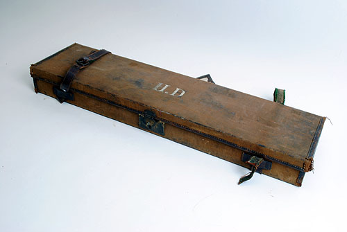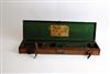 A CANVAS AND LEATHER SINGLE GUNCASE, fitted for 30in. barrels, the interior lined with green baize, brass lock (key missing)