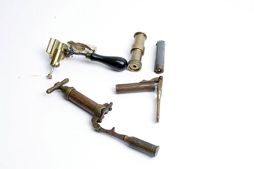 A COLLECTION OF VINTAGE CARTRIDGE RE-LOADING TOOLS, including roll turn-over tools, cartridge sizers