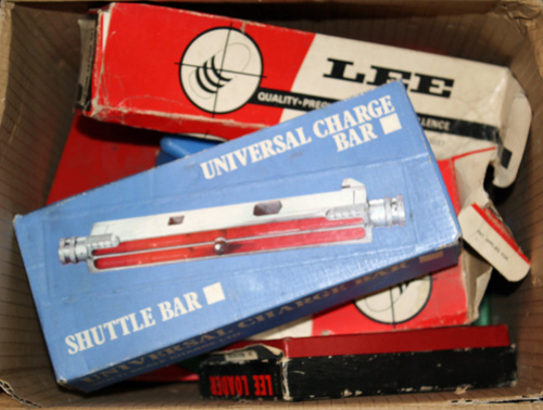 A COLLECTION OF RELOADING ACCESSORIES, including bullets moulds, loading dies, uniflow powder measure, for .22-250, 9mm luger,