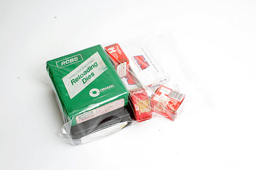A COLLECTION OF RELOADING EQUIPMENT, including .17 rem loading dies, 17-222 loading dies, .17 bullet heads, .222 unprimed brass cartridge cases