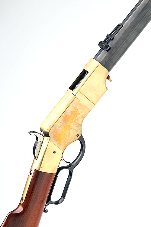 A .44-40 LEVER-ACTION REPEATING SPORTING-RIFLE SIGNED UBERTI, MODEL 'HENRY', serial no. 11618, with blued 24 1/4in. octagonal barrel with integral under-barrel magazine, brass receiver and walnut butt-stock
