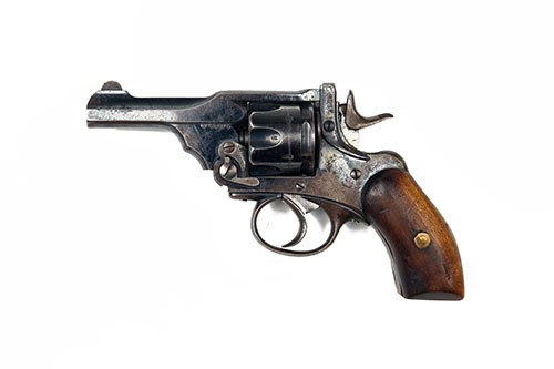 ** A .38 SIX-SHOT REVOLVER SIGNED WEBLEY MARK 3 Serial no. 21141 with 3in barrel the top strap marked P.Webley & Son London & Birmingham with fluted cylinder and frame all retaining a good amount of original colour with replacement plain wood grips.