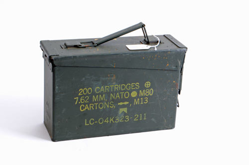 A COLLECTION OF FOUR NATO METAL AMMUNITION CARTRIDGE HOLDERS,
