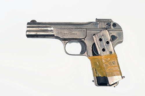 ** A 7.65 (.32 ACP) SEMI-AUTOMATIC PISTOL SIGNED FN ,MODEL 1900 BROWNING serial no. 286624 with 4in barrel with its hard- rubber factory grips with FN monogram retaining traces of its nickel plated finish (remainder polished bright) together with a spare magazine.