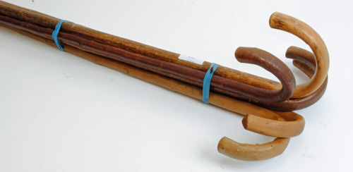 A COLLECTION OF SIX VINTAGE ALPINE WALKING STICKS, all approx. 36in. long